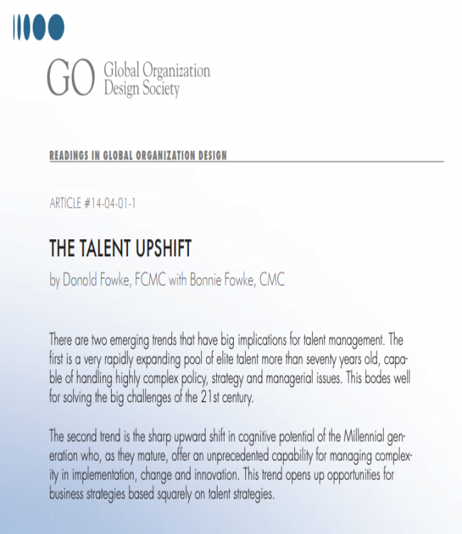 Speaker B So I was reading Alan Greenspan's most recent book, and he's very pessimistic about U. S. Growth because he's basically saying, we've got all these challenges that that is outlined here, but we aren't getting any smarter. And I want to talk to you about some work that my partner Bonnie and I have been working on over the winter, that the basic thesis here is that Alan Greenspan has got it wrong and that we've got the capacity in the society to handle the challenges that dad Simon has outlined. And I want to base this argument here on two emerging trends that have big implications for talent management. Now, the first is that there are more capable people available who are 70 years old and older. The second is that we've got smarter millennials and that companies and governments that grasp these trends will have the ability to shape the future as never before. These trends are supported by underlying patterns in the demographics in most of the Western world and also by improvements in smarts described by the Flynn Effect. Let's look at these in turn. In 2014, Western industrialized countries are younger than at any time in history and will remain so through the middle of the century. Now, how can I say that when we all know that we're in an aging population? The reason I can say that is that while the average age of the population is rising, but the remaining life expectancy is rising faster, it is expected that of the millennial generation born in the last 30 years, half of them will live to see their hundredth birthday. So we've got an aging population in one sense, but in terms of life expectancy, we've got a population that's getting younger. So being old at simply 65 is simply wrong. Now, I want to show you how this all works, and I'm going to use the Jax Talent Pool Maturation data sheet as my basis for my argument here. And I'm going to talk about Ted Rogers and the Jack's curves. Now, Ted Rogers is a very famous Canadian entrepreneur who passed away a few years ago. And this chart is, of course, Elliot's famous talent pool maturation data sheet and Ted Rogers'career curve is shown in the yellow envelope in the mode curve there that ends at mode seven. And these blue dots show turning points in his career where he passed, in this case, from stratum four to stratum five, and from five to six and six to seven. And you can see this very clearly in the man's history. Now, the thing here is that first thing here to note is that Ted Rogers died in his early seventy s, and he was still very active in his business. And if Ted's life expectancy, as is happening to the younger generation, were longer than that, you can see that his trajectory was still up. And while, when Elliot did these curves, he stopped the curves at 70. I want you to imagine what these curves might look like if they went out to 100, because in the high stratum, high mode aspects of the curve, these curves are still rising rapidly at the end. Now, just so you can place yourself in terms of the total population, the green curve there is the average employee in an organization that's about the median or the average of the capacity of the average employee. The pink band are typically trained professionals, so that you can see they start out in stratum two and they end up in stratum three. Those of you haven't spent time with these curves, you should, because I think Elliot said one time that this was probably the most important copyrighted piece that he produced in his lifetime. The insights in this particular chart. So I'm going to talk about two things here. I'm going to talk about the curves extending farther beyond 70, and I'm going to talk about something called the Flynn effect, where we'll see that there's an upshift in the bottom parts of the curves. Now, Jack described the changes in capability and in capacity to handle complexity as one move from one stratum to the next as analogous to ice changing to water, and then at the next boundary, water changing to steam or like a change of state. We're not talking about some minor shift in things here. We're talking about a major shift in capability. And while comprising a very small segment of the population, people functioning at stratum five and above as leaders, policymakers, innovators, and other influential roles, have a unique capacity to understand social and economic issues, frame strategies to address them, and organize and manage capacity in the society to address them. In the 20th century, we had an expanding capacity to manage industrial complexity, and Elliot produced this table which showed what happened as the life expectancy of the population went from 50 years old to 70 years old, which is really what happened during the 20th century. And you can see the changes in the right hand side here are very, very substantial in stratum five and above, very, very substantial in terms of the numbers in the population per million. So that's what happened in the 20th century. That was the landscape that Elliot was dealing with when he was writing, studying and writing. Now, in the 21st century, we have expanding capacity. We need expanding capacity to manage global complexity. We're into a new set of problems here, a new set of challenges. And Thad, I think, put his finger right on them. So what happens when we go to a life expectancy of 100 instead of a life expectancy of 70, which is what is happening in this century? Take a look at this set of changes on the right here. And when Alan Greenspan says we're not getting any smarter and we can see that the approximate numbers in the 21 to 70 year old population per million go from three to 103, we've got a major, major change in top leadership, top thinking capacity in the society. And the numbers are also very large as we go down the table there at the bottom. We have much, much stronger capacity in the population emerging here to deal with the problems we're trying to deal with. Now, the other thing I want 